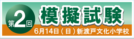 第2回 模擬試験 6月14日 会場:新渡戸文化小学校 いつもと違う会場で本番の緊張感を経験しましょう。 |